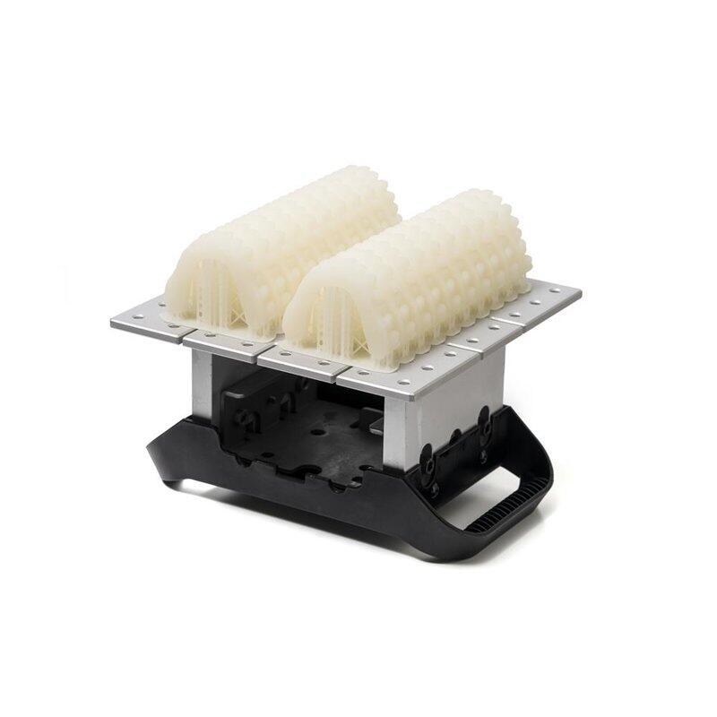O tamanho máximo de 200 x 200 x 200 x 180 mm melhora a produtividade, permitindo que todos os tamanhos e formas diferentes sejam impressos de uma só vez. No caso de uma pequena produção em série, isso permite a produção simultânea de vários componentes. Em vez de um método vetorial, um método de digitalização exclusivo é escolhido para aumentar a velocidade de impressão. Isso oferece vantagens quando o tamanho da cama completa é usado. Claro, objetos grandes únicos também podem ser realizados.